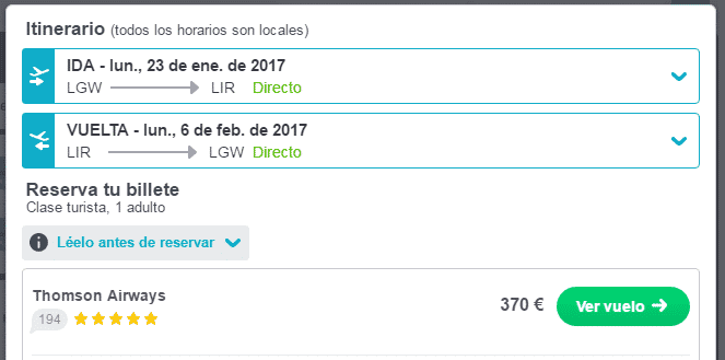 3º Ver Vuelo en el precio más bajo, en este caso, “Ver Vuelo con Thomson Airways”