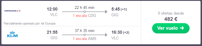 Valencia – Rio de Janeiro 482€ Ida y Vuelta